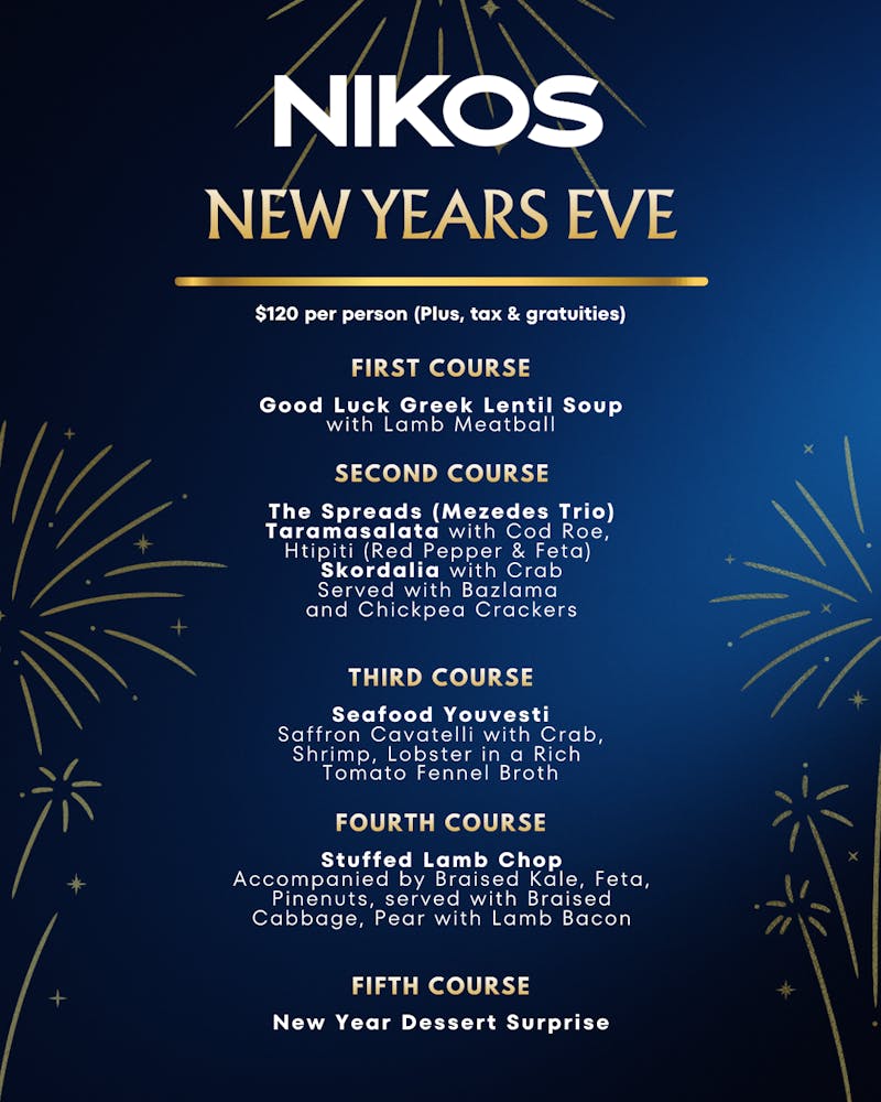 Whether you’re starting your New Year’s celebration with friends, family, or a special date, Nikos offers the perfect setting to toast to what’s ahead.